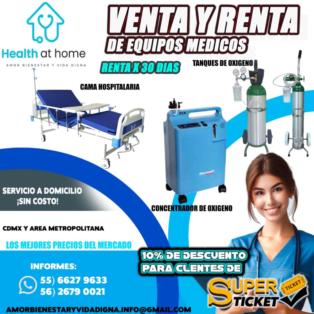 En «Health at home – Amor Bienestar y Vida Digna», ofrecemos soluciones integrales para el cuidado de la salud en casa, incluyendo venta y renta de equipos médicos como camas hospitalarias, tanques y concentradores de oxígeno.