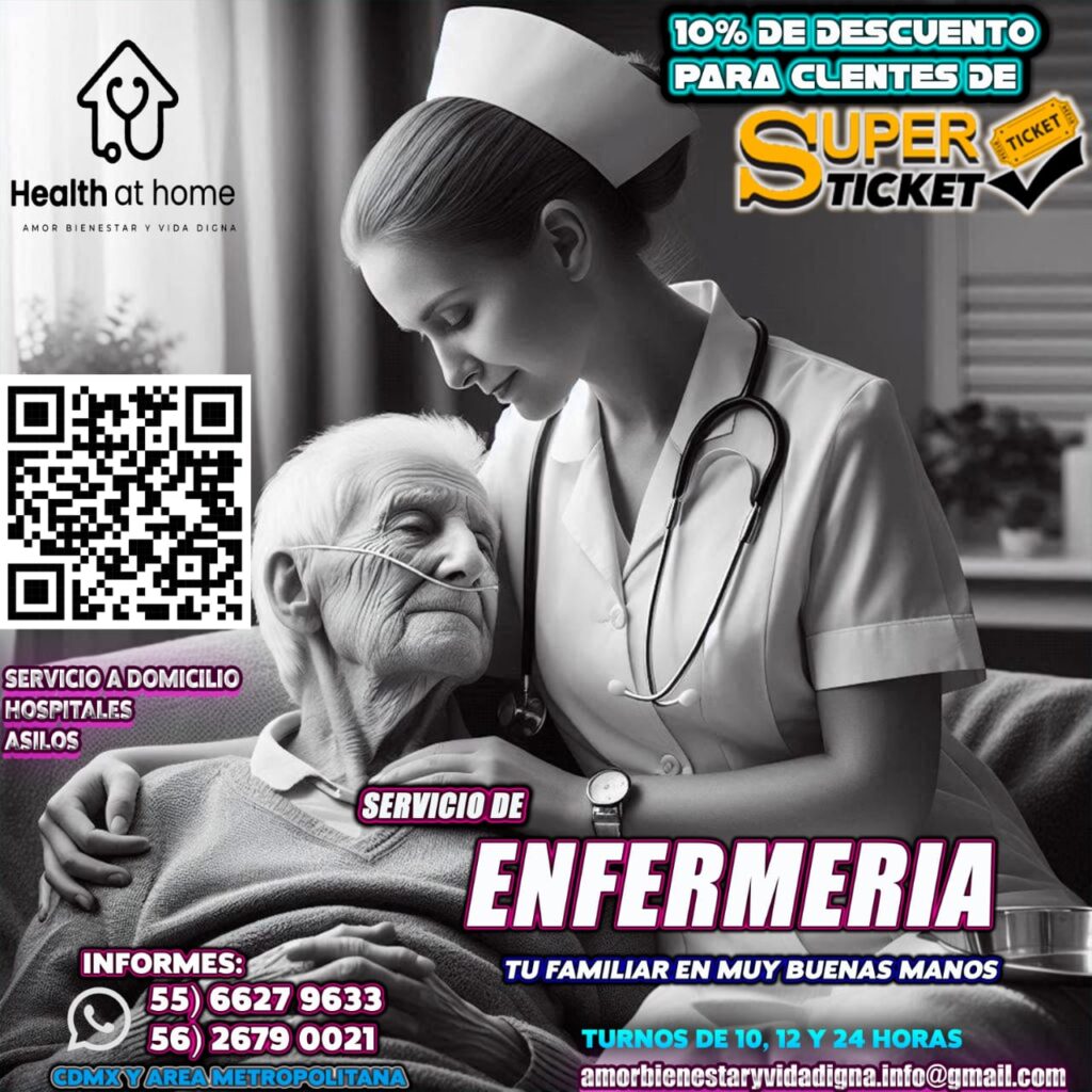 Como cliente Superticket, reciba un 10% de descuento en todos nuestros servicios de enfermería. Nuestro servicio a domicilio está disponible en CDMX y Área Metropolitana.
